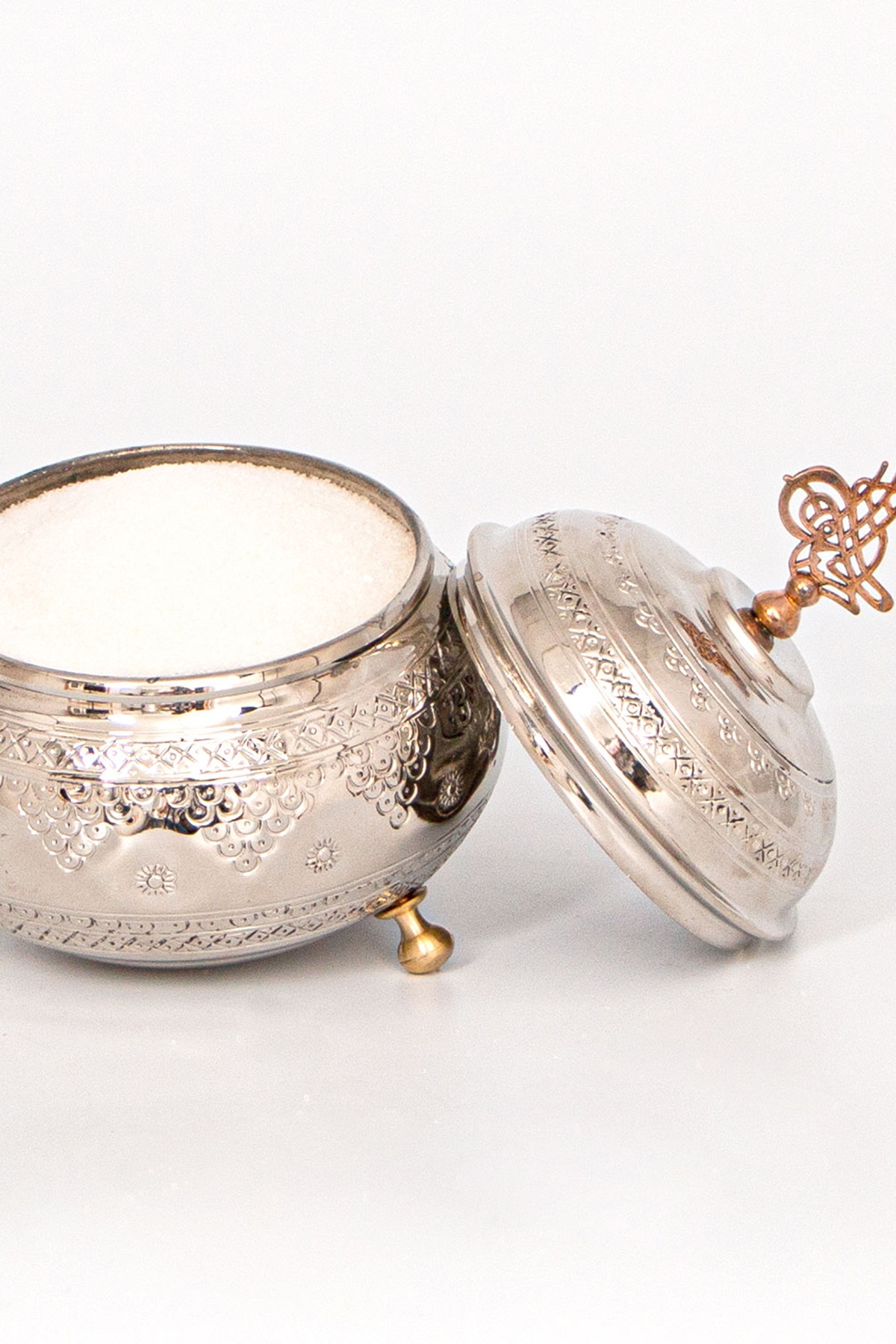 - Bu zarif gümüş dövme şekerlik, çay saatlerinden özel davetlere, sofralarınızı şıklıkla tamamlamak için ideal bir kullanım alanı sunar.