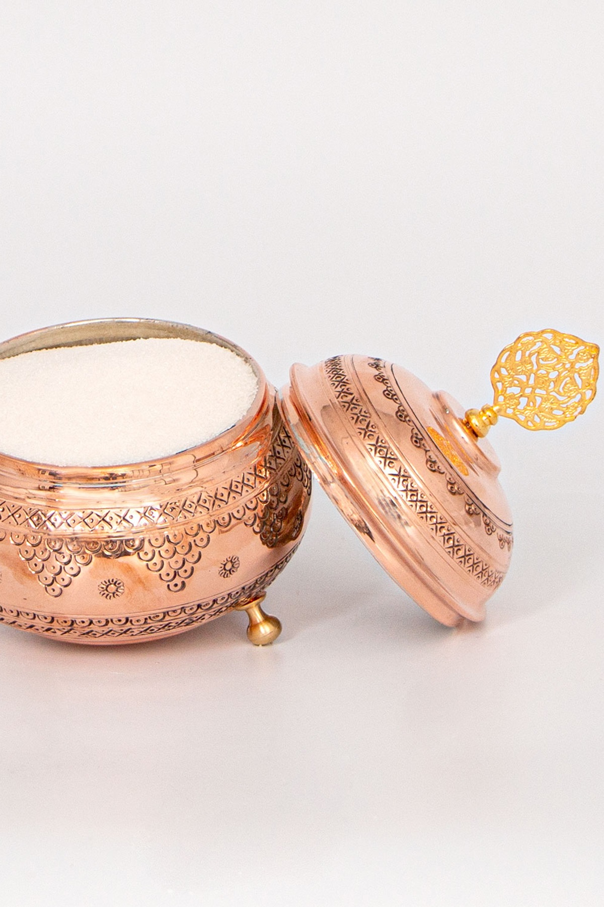 - Bu zarif Bronz dövme şekerlik, çay saatlerinden özel davetlere, sofralarınızı şıklıkla tamamlamak için ideal bir kullanım alanı sunar.